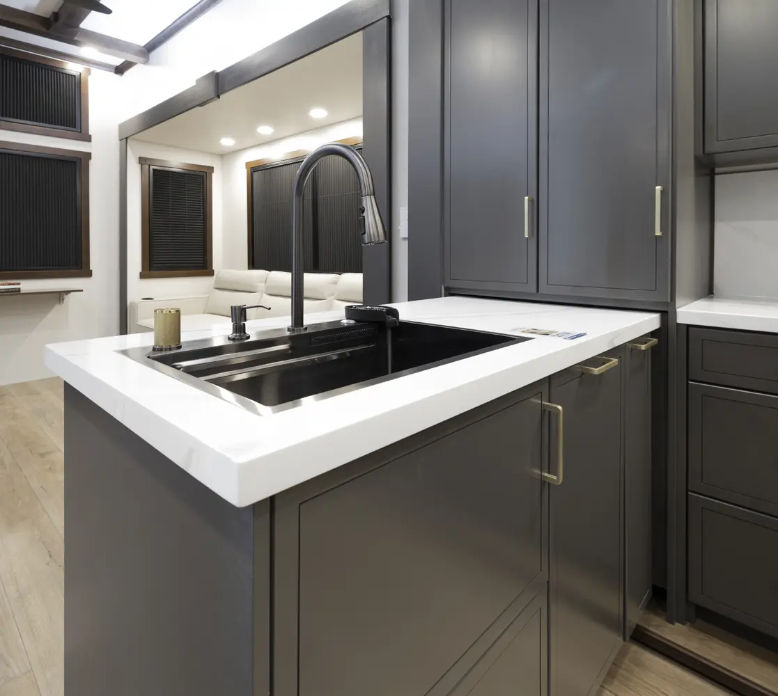 • Residential-Style Dovetail, Self-Closing Drawers, and Hidden Hinge Cabinet Doors