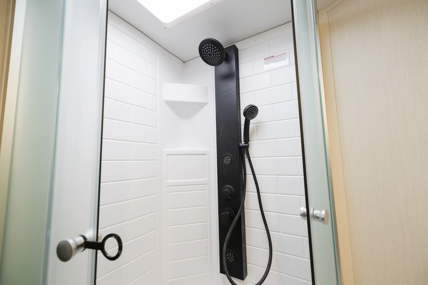 • Blackout Glass, Safety Slam, Friction Hinge Entry Door with Window and Shade Prep (N/A on LP models)