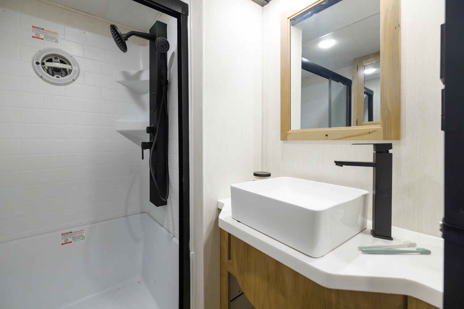 • Blackout Glass, Safety Slam, Friction Hinge Entry Door with Window and Shade Prep (N/A on LP models)