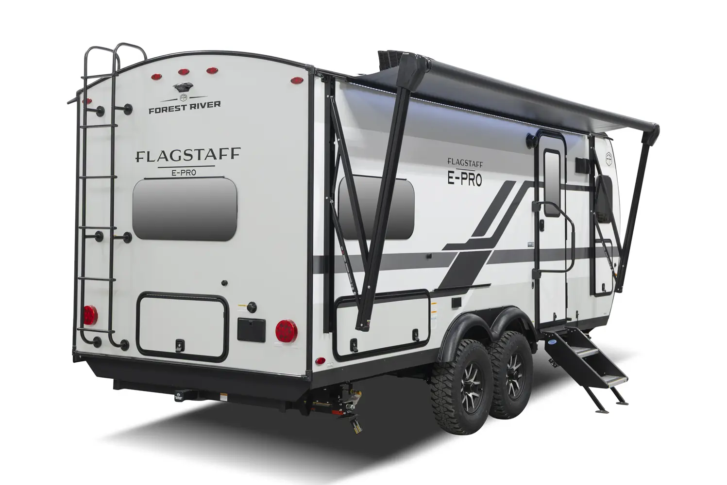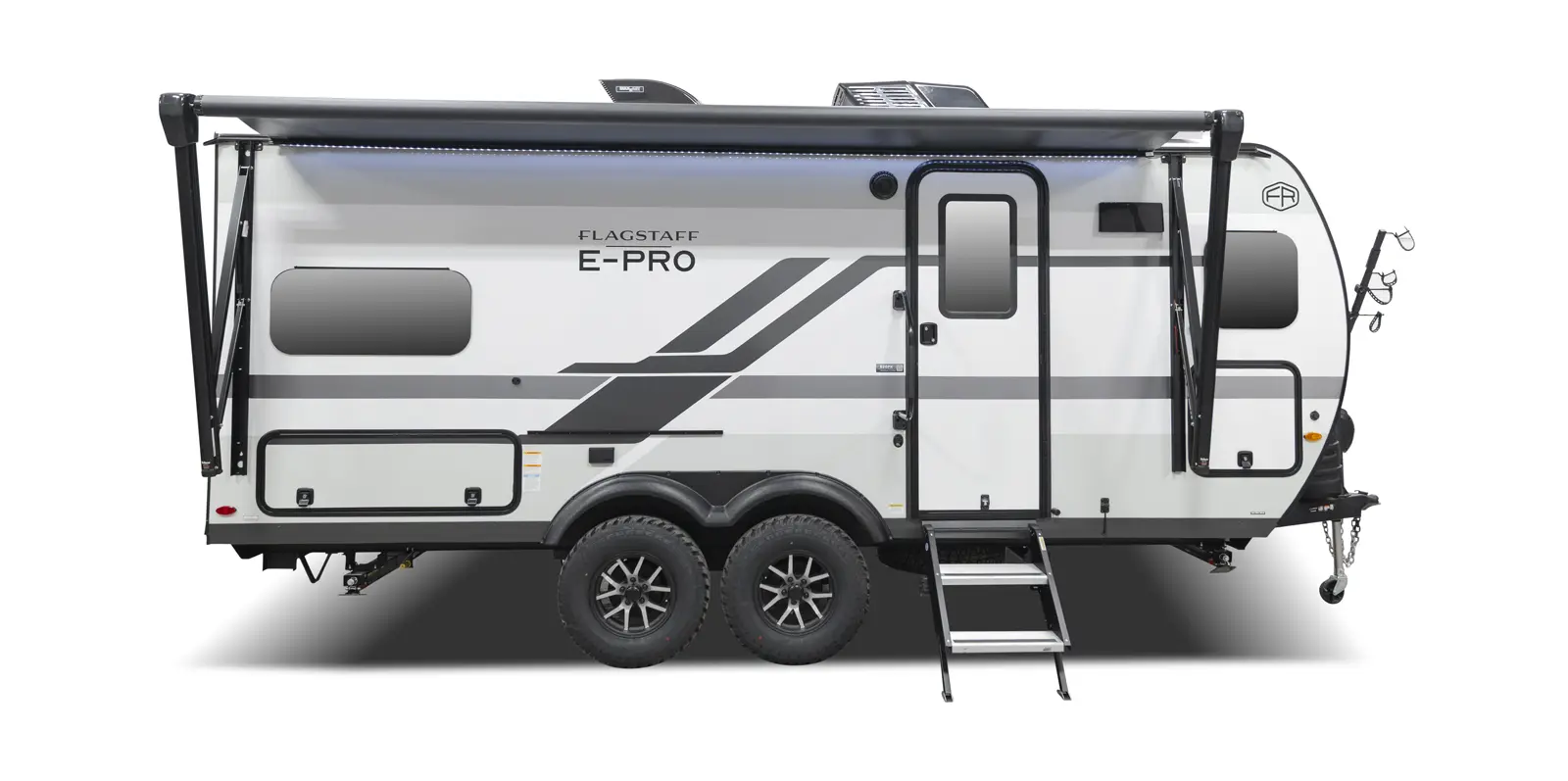 The 20FK is a compact trailer packed with big features! Our first dual axle E-Pro gives you improved stability and towing confidence in a lightweight design. The front kitchen offers excellent counter space while the rear sleeping area and slide-out create a comfortable, open living space. At just over 21 feet, and around 4,200 lbs., the 20FK delivers easy towing with the durability and off grid features that Flagstaff is known for.