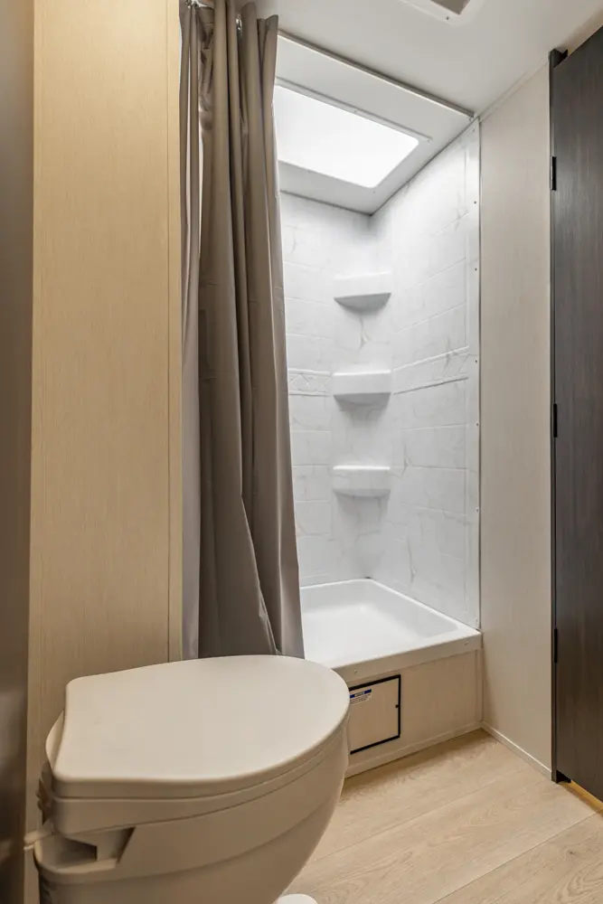 • Blackout Glass, Safety Slam, Friction Hinge Entry Door with Window and Shade Prep (N/A on LP models)