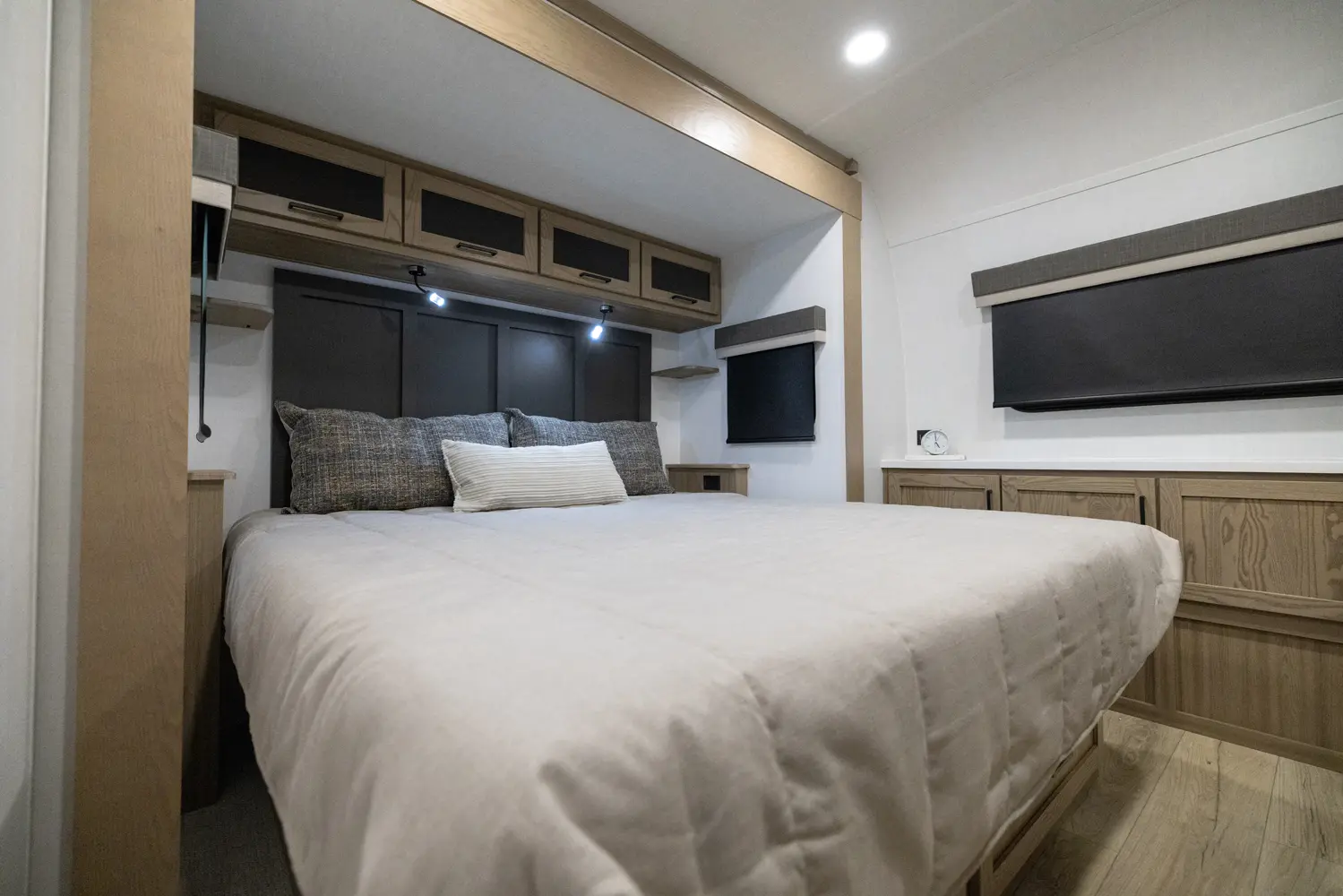 Adding another suites series model to our lineup, this floor plan might just take the bacon. With a giant king bed standard, enough storage for all your snacks, and an outside kitchen that is a chef's dream, this model has it all in a length under 30 ft.